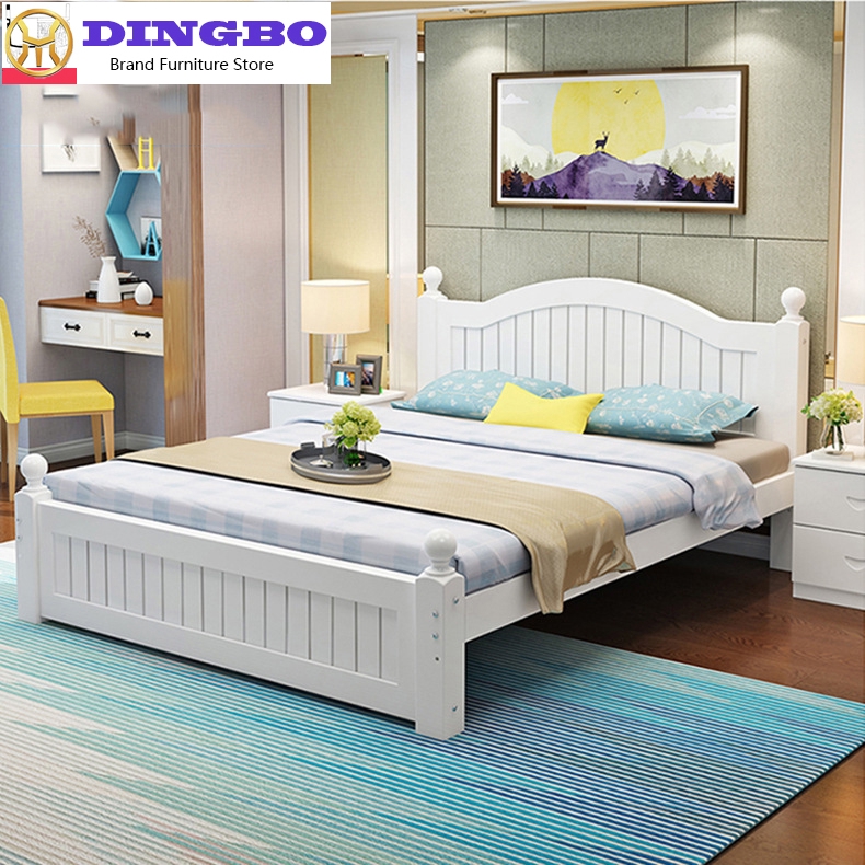Dingbo Simple Solid Wood Bed Bedroom Double Bed 1 8 M 1 5 M Adult Bed White Master Bedroom Single Bed Shopee Malaysia